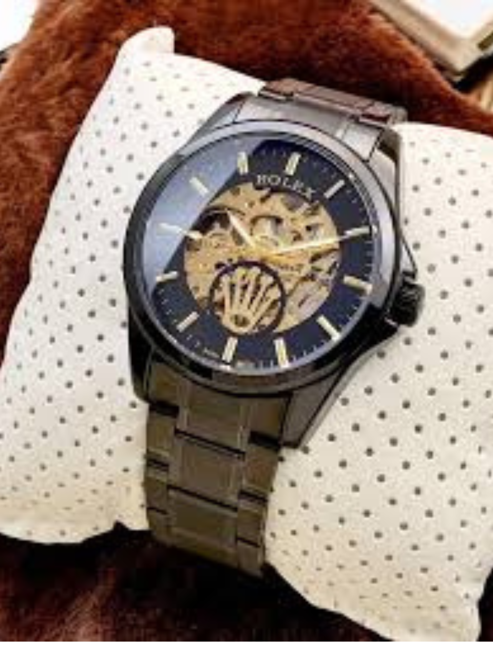 Whether you’re attending a business meeting, a formal event, or a casual gathering, the Black Skeleton Automatic Watch with Gold Accents will undoubtedly become your go-to accessory. Its classic yet contemporary design makes it versatile and timeless. The skeleton dial adds a touch of uniqueness and intrigue, allowing you to stand out while showcasing your appreciation for fine details and exceptional engineering.