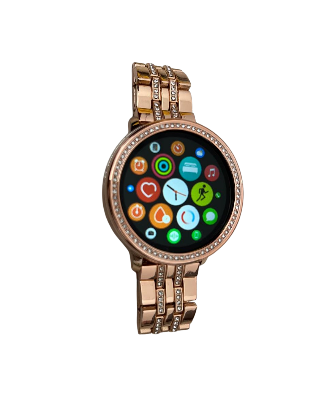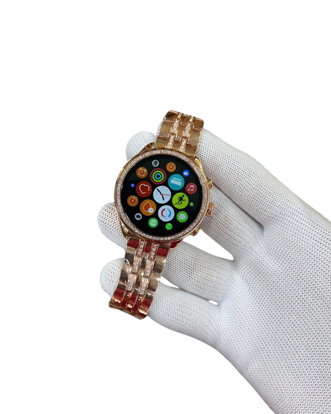 Its vibrant full-touch HD display, crystal-studded bezel, and round dial make it look like a true fashion accessory while still offering powerful smart features. Whether you’re tracking fitness, staying connected, or enhancing your daily routine, this watch does it all effortlessly.