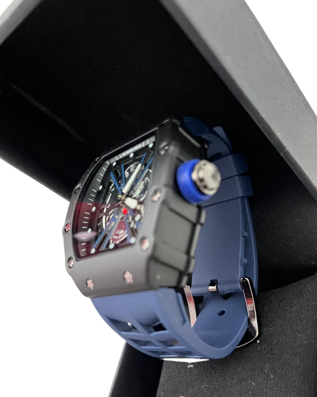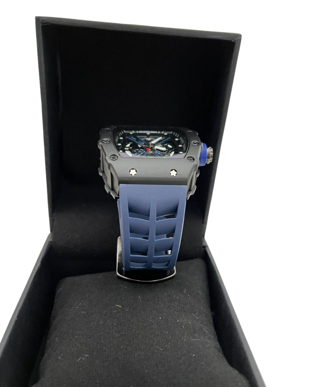 Luxury-Inspired Skeleton Sports Watch | Blue Rubber Strap | Modern Transparent Dial