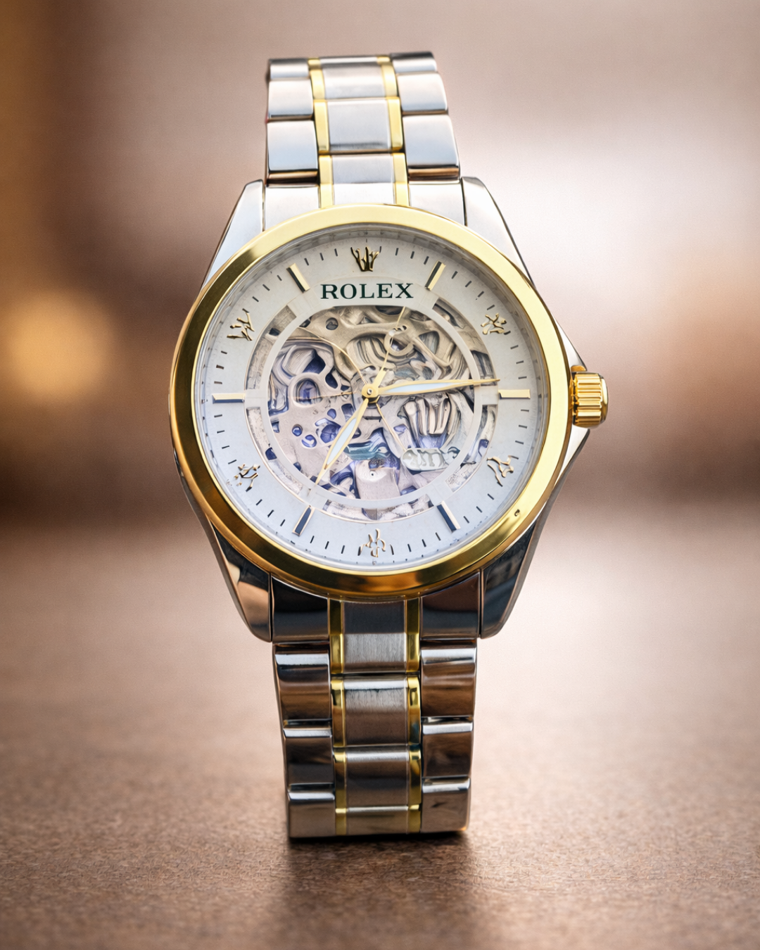 Whether you’re attending a business meeting, a gala dinner, or simply enjoying a casual outing, the Rolex Automatic Watch seamlessly enhances your overall look. The white dial exudes charm and simplicity, while the golden-silver body completes the sophisticated design, creating an accessory that transcends trends and remains timeless through the years.